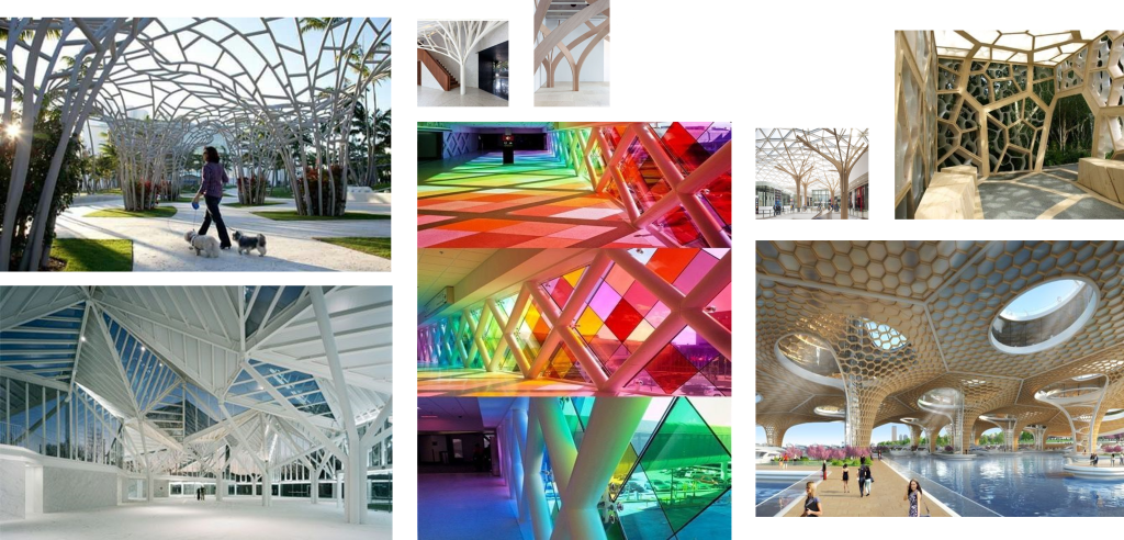 Tomando inspiración de edificios que han realizado uniones trianguladas diseñé la estructura.