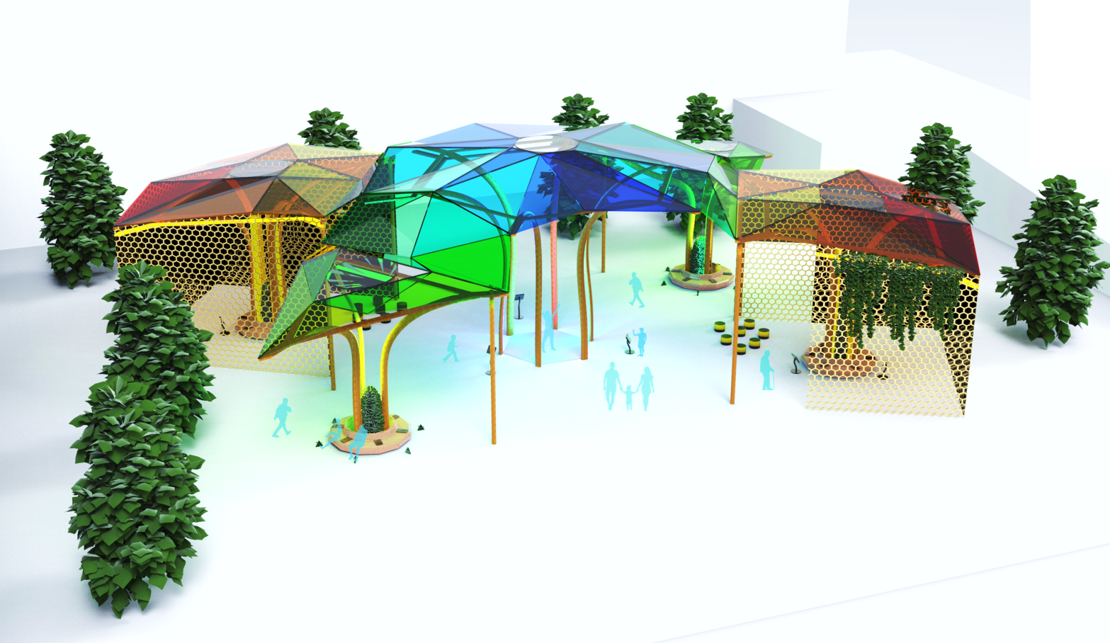 El proyecto es un pabellón abierto basado en un bosque y pensado para la plaza Agustín Lara. Está constituido por tres módulos que cada uno simboliza una parte del ser humano: cuerpo, mente y espíritu. Cuenta con un techo de paneles solares mediante triangulación de múltiples colores en forma de vitral.
