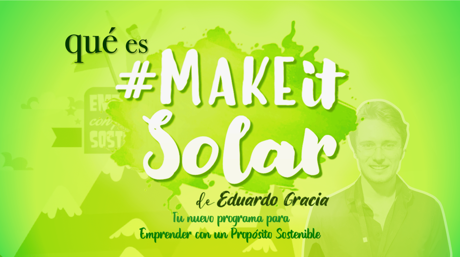 Cuenta ya en sus primeros 3 meses con reconocimientos de organizaciones como la ONU y con presencia internacional, impartiéndose en español e inglés en países como España, Colombia o China. Mi nombre es Eduardo Gracia y he creado e imparto MakeitSolar, después de fundar años antes una empresa de muebles que generan electricidad gracias al sol y tras seguir liderando proyectos y diseñando productos de impacto, he decido dar forma a esta iniciativa para ayudar a despertar el emprendimiento con base en la sostenibilidad a todo el que esté interesado en sumarse.