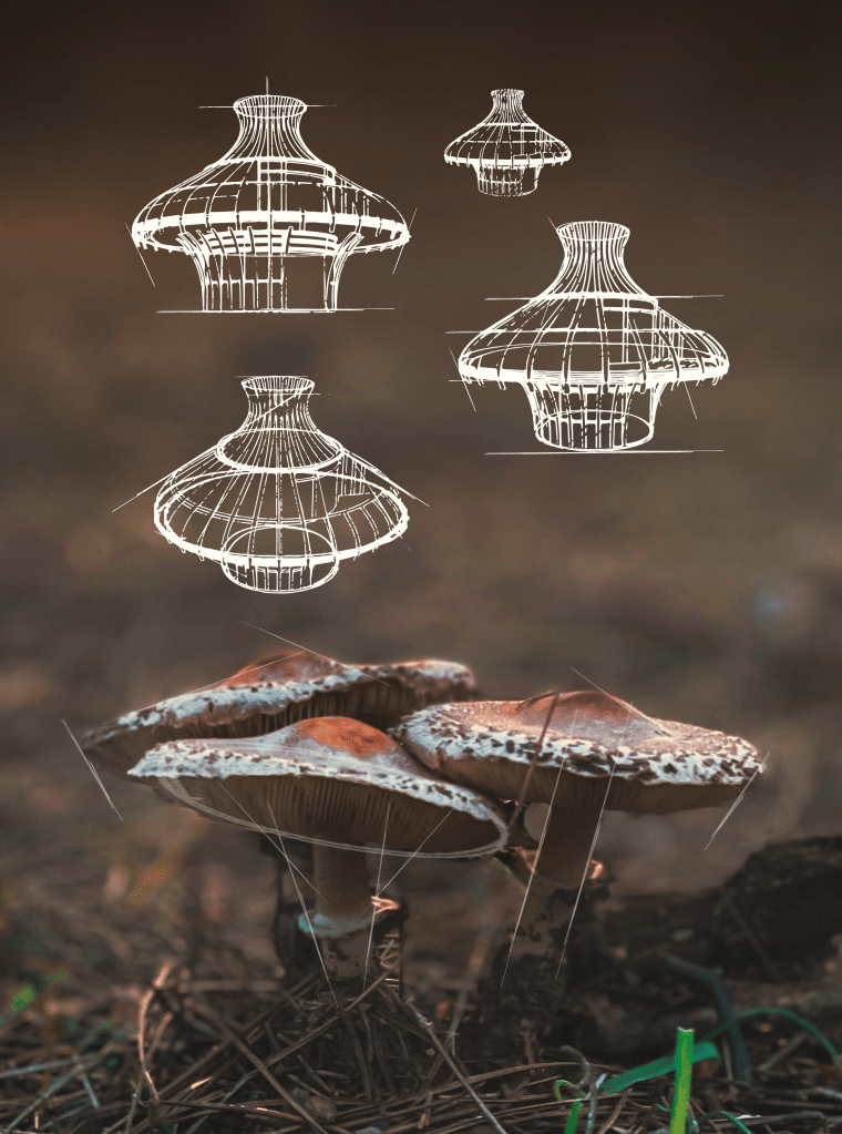 I’m thrilled to unveil my latest design creation – a picturesque town of villas crafted from bamboo, inspired by the whimsical shapes of mushrooms. Each villa boasts organic, flowing lines that blend seamlessly with the surrounding landscape, creating a harmonious haven of tranquility and beauty. 🌳💫